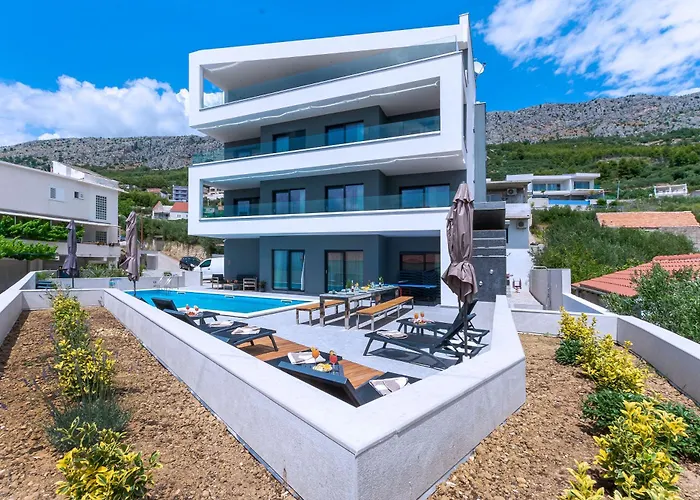 Located about 10 minutes' drive from the Starry village Mosor, the 11-bedroom Villa Leona Xxl Jesenice offers a terrace with views of the mountain.